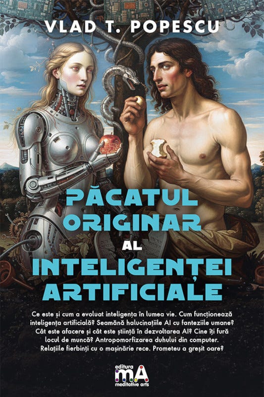 În acest context, lectura volumului „Păcatul originar al inteligenței artificiale” (editura Meditative Arts, București, 2025) este un gest mai mult decât necesar pentru cei care vor să se documenteze, să afle ce mecanisme funcționează dincolo de această sintagmă totalizatoare din punct de vedere logic și totalitară din punct de vedere al comunicării. Scris dintr-o perspectivă aflată în centrul de greutate al unui triunghi ce are în cele trei colțuri expunerea academică, textul de popularizare și meditația proprie a autorului, volumul este o lectură care poate fi asemănată cu un enunț simplu, care creează însă reverberații profunde în mintea cititorului.